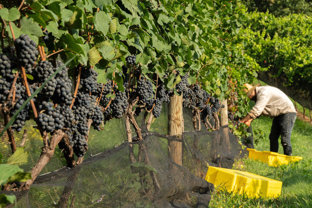 Planted intentionally so grapes receive appropriate sun exposure and access to winds (which are beneficial during humid summers), the vines are managed and harvested by hand.